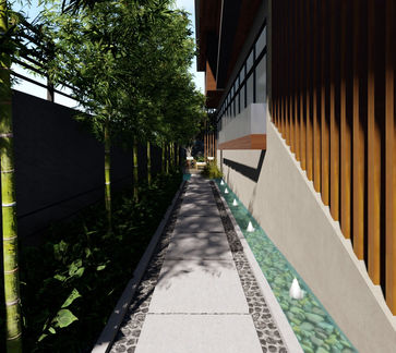 The design features mainly low-maintenance plant species and layouts. Despite this, the designer did not compromise any aesthetic or functional value, rather, created a more minimalistic approach on the area. The water features, on the other hand, at the back and front yards add to the softness of the other areas, such as: the spill-over of the living room, alfresco, and "grill-numan", as per request of the client.